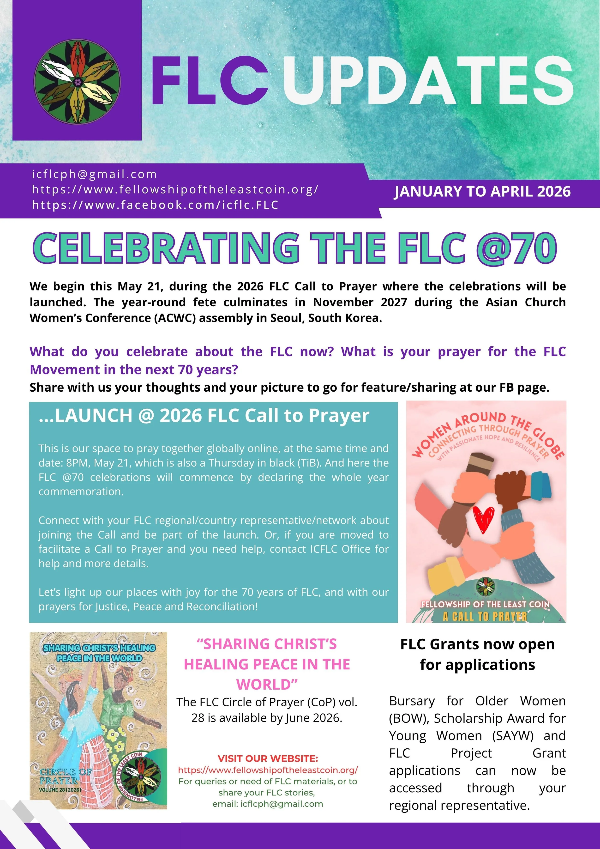 The Fellowship of the Least Coin (FLC) - a global ecumenical movement of prayer for justice, peace and reconciliation, commits to the wellbeing of women, girls and their communities all over the world.